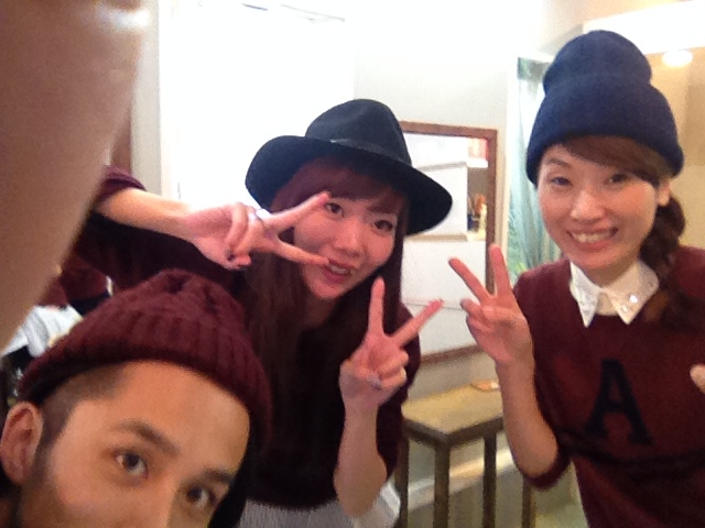 オーナーは帽子、わたしとYukaちゃんはニットで♡
