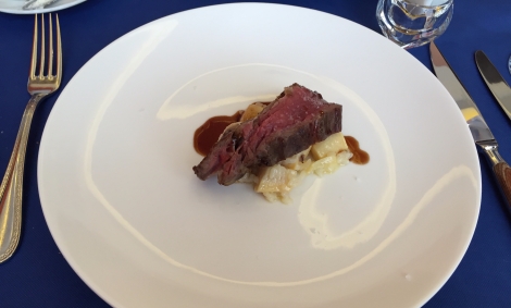 メインのお肉の下のたけのこのリゾットが