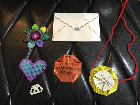 お手紙もビーズで作ってくれた小物も