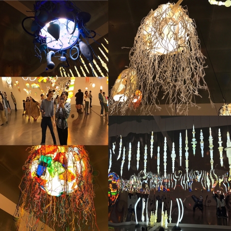 プラスチックのゴミを照明にアレンジしたものなんですが、