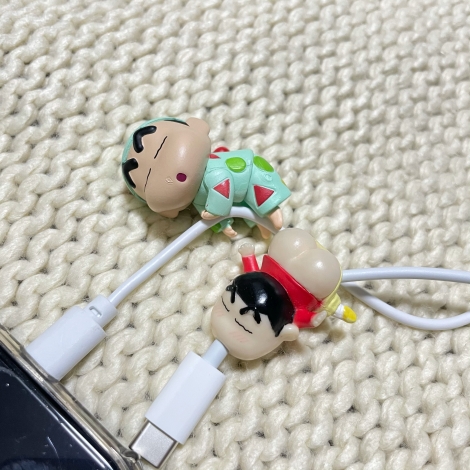 これはiPhoneの充電器の線につけてるケーブルカバーのクレヨンしんちゃんです笑